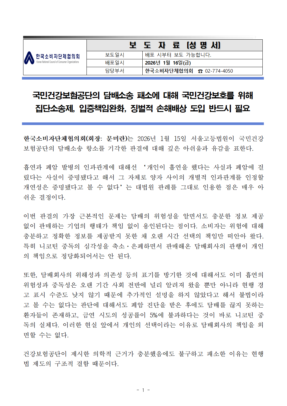 서울특별시 종로구 세종대로23길 54 세종빌딩 803호 (03173) TEL : 774-4050 FAX : 774-4090 E-MAIL : sohyub@consumer.or.kr